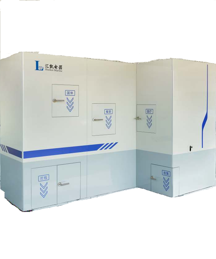 对舰船上生产的垃圾进行处理,可针对不同种类垃圾进行粉碎、炭化、压实等不同方式的处理,做到减容减重,方便存放或排放。